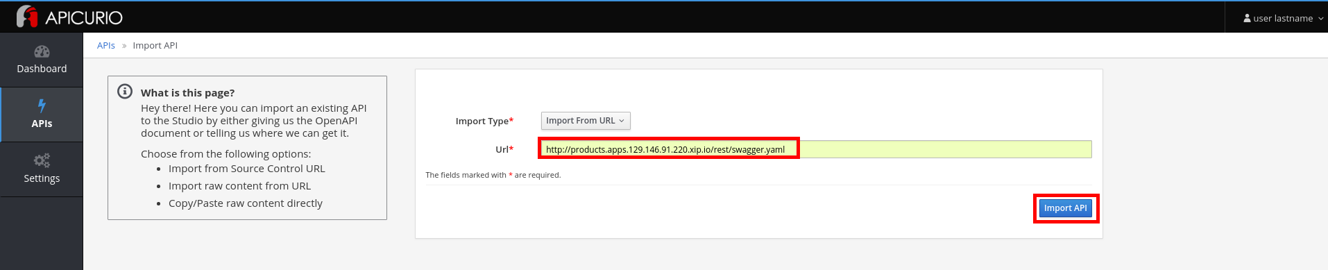 - Click on the Import API button.