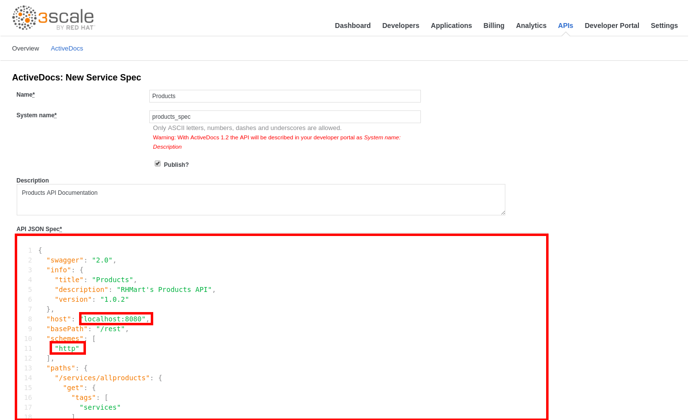 - Close Apicurio, and go back to the 3Scale admin console web browser tab.